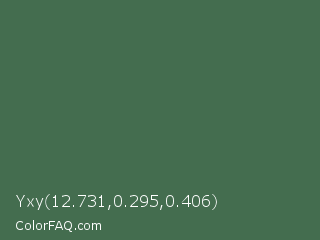 Yxy 12.731,0.295,0.406 Color is a normal green color and the nearest color is Killarney #3a6a47. Hex code #446d4f and RGB value is rgb(68,109,79). In RGB color space, this color is composed of 27% red, 43% green, 31% blue, In CMYK color space, this color is composed of 38% cyan, 0% magenta, 28% yellow , 57% black , In HSL color space, this color has a hue angle of 136° , 23% saturation and 35% lightness.