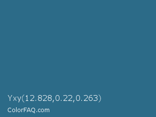 Yxy 12.828,0.22,0.263 Color is a normal blue color and the nearest color is Calypso #31728d. Hex code #2c6b88 and RGB value is rgb(44,107,136). In RGB color space, this color is composed of 17% red, 42% green, 53% blue, In CMYK color space, this color is composed of 68% cyan, 21% magenta, 0% yellow , 47% black , In HSL color space, this color has a hue angle of 199° , 51% saturation and 35% lightness.