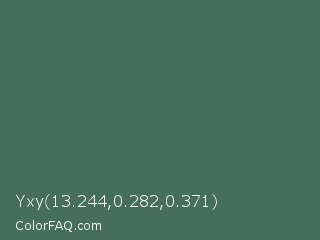 Yxy 13.244,0.282,0.371 Color is a normal green color and the nearest color is Finlandia #556d56. Hex code #466e5d and RGB value is rgb(70,110,93). In RGB color space, this color is composed of 27% red, 43% green, 36% blue, In CMYK color space, this color is composed of 36% cyan, 0% magenta, 15% yellow , 57% black , In HSL color space, this color has a hue angle of 155° , 22% saturation and 35% lightness.