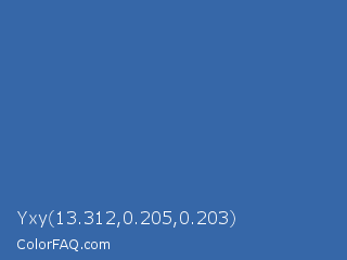 Yxy 13.312,0.205,0.203 Color is a normal blue color and the nearest color is Azure #315ba1. Hex code #3667a8 and RGB value is rgb(54,103,168). In RGB color space, this color is composed of 21% red, 40% green, 66% blue, In CMYK color space, this color is composed of 68% cyan, 39% magenta, 0% yellow , 34% black , In HSL color space, this color has a hue angle of 214° , 51% saturation and 44% lightness.