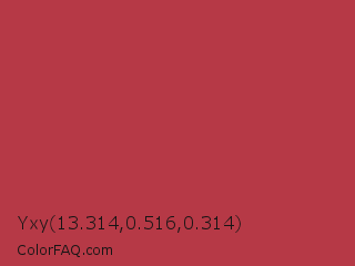Yxy 13.314,0.516,0.314 Color is a normal red color and the nearest color is Medium Carmine #af4035. Hex code #b63946 and RGB value is rgb(182,57,70). In RGB color space, this color is composed of 71% red, 22% green, 27% blue, In CMYK color space, this color is composed of 0% cyan, 69% magenta, 62% yellow , 29% black , In HSL color space, this color has a hue angle of 354° , 52% saturation and 47% lightness.