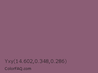 Yxy 14.602,0.348,0.286 Color is a normal rose color and the nearest color is Mauve Taupe #915f6d. Hex code #8b5d75 and RGB value is rgb(139,93,117). In RGB color space, this color is composed of 55% red, 36% green, 46% blue, In CMYK color space, this color is composed of 0% cyan, 33% magenta, 16% yellow , 45% black , In HSL color space, this color has a hue angle of 329° , 20% saturation and 45% lightness.