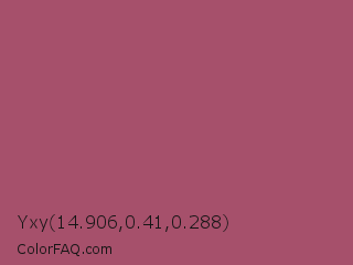 Yxy 14.906,0.41,0.288 Color is a normal rose color and the nearest color is China Rose #a8516e. Hex code #a6506b and RGB value is rgb(166,80,107). In RGB color space, this color is composed of 65% red, 31% green, 42% blue, In CMYK color space, this color is composed of 0% cyan, 52% magenta, 36% yellow , 35% black , In HSL color space, this color has a hue angle of 341° , 35% saturation and 48% lightness.