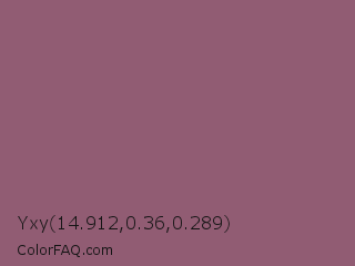 Yxy 14.912,0.36,0.289 Color is a normal rose color and the nearest color is Mauve Taupe #915f6d. Hex code #915c73 and RGB value is rgb(145,92,115). In RGB color space, this color is composed of 57% red, 36% green, 45% blue, In CMYK color space, this color is composed of 0% cyan, 37% magenta, 21% yellow , 43% black , In HSL color space, this color has a hue angle of 334° , 22% saturation and 46% lightness.