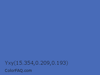 Yxy 15.354,0.209,0.193 Color is a normal blue color and the nearest color is San Marino #456cac. Hex code #486bb8 and RGB value is rgb(72,107,184). In RGB color space, this color is composed of 28% red, 42% green, 72% blue, In CMYK color space, this color is composed of 61% cyan, 42% magenta, 0% yellow , 28% black , In HSL color space, this color has a hue angle of 221° , 44% saturation and 50% lightness.