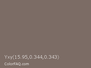 Yxy 15.95,0.344,0.343 Color is a normal orange color and the nearest color is Sandstone #796d62. Hex code #7c6c65 and RGB value is rgb(124,108,101). In RGB color space, this color is composed of 49% red, 42% green, 40% blue, In CMYK color space, this color is composed of 0% cyan, 13% magenta, 19% yellow , 51% black , In HSL color space, this color has a hue angle of 18° , 10% saturation and 44% lightness.