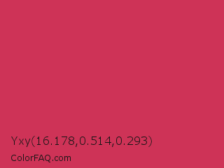 Yxy 16.178,0.514,0.293 Color is a normal red color and the nearest color is Dingy Dungeon #c53151. Hex code #ce3357 and RGB value is rgb(206,51,87). In RGB color space, this color is composed of 81% red, 20% green, 34% blue, In CMYK color space, this color is composed of 0% cyan, 75% magenta, 58% yellow , 19% black , In HSL color space, this color has a hue angle of 346° , 61% saturation and 50% lightness.