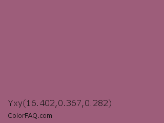 Yxy 16.402,0.367,0.282 Color is a normal rose color and the nearest color is Rose Dust #9e5e6f. Hex code #9d5d7a and RGB value is rgb(157,93,122). In RGB color space, this color is composed of 62% red, 36% green, 48% blue, In CMYK color space, this color is composed of 0% cyan, 41% magenta, 22% yellow , 38% black , In HSL color space, this color has a hue angle of 333° , 26% saturation and 49% lightness.