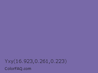 Yxy 16.923,0.261,0.223 Color is a normal indigo color and the nearest color is Deluge #7563a8. Hex code #7869a8 and RGB value is rgb(120,105,168). In RGB color space, this color is composed of 47% red, 41% green, 66% blue, In CMYK color space, this color is composed of 29% cyan, 38% magenta, 0% yellow , 34% black , In HSL color space, this color has a hue angle of 254° , 27% saturation and 54% lightness.