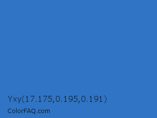 Yxy 17.175,0.195,0.191 Color is a normal blue color and the nearest color is Mariner #286acd. Hex code #2f74c5 and RGB value is rgb(47,116,197). In RGB color space, this color is composed of 18% red, 45% green, 77% blue, In CMYK color space, this color is composed of 76% cyan, 41% magenta, 0% yellow , 23% black , In HSL color space, this color has a hue angle of 212° , 61% saturation and 48% lightness.
