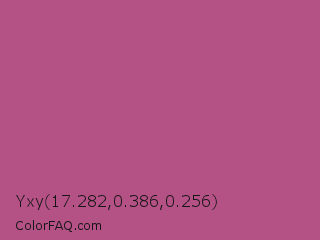 Yxy 17.282,0.386,0.256 Color is a normal rose color and the nearest color is Tapestry #b05e81. Hex code #b45185 and RGB value is rgb(180,81,133). In RGB color space, this color is composed of 71% red, 32% green, 52% blue, In CMYK color space, this color is composed of 0% cyan, 55% magenta, 26% yellow , 29% black , In HSL color space, this color has a hue angle of 328° , 40% saturation and 51% lightness.