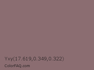 Yxy 17.619,0.349,0.322 Color is a normal red color and the nearest color is Opium #8e6f70. Hex code #8b6d71 and RGB value is rgb(139,109,113). In RGB color space, this color is composed of 55% red, 43% green, 44% blue, In CMYK color space, this color is composed of 0% cyan, 22% magenta, 19% yellow , 45% black , In HSL color space, this color has a hue angle of 352° , 12% saturation and 49% lightness.