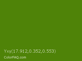 Yxy 17.912,0.352,0.553 Color is a dark green color and the nearest color is Avocado #568203. Hex code #4f8308 and RGB value is rgb(79,131,8). In RGB color space, this color is composed of 31% red, 51% green, 3% blue, In CMYK color space, this color is composed of 40% cyan, 0% magenta, 94% yellow , 49% black , In HSL color space, this color has a hue angle of 85° , 88% saturation and 27% lightness.
