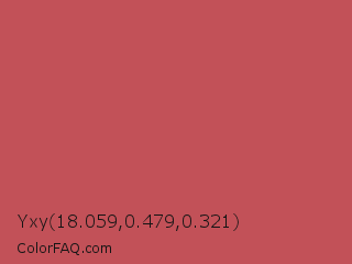 Yxy 18.059,0.479,0.321 Color is a normal red color and the nearest color is Fuzzy Wuzzy Brown #c45655. Hex code #c25158 and RGB value is rgb(194,81,88). In RGB color space, this color is composed of 76% red, 32% green, 35% blue, In CMYK color space, this color is composed of 0% cyan, 58% magenta, 55% yellow , 24% black , In HSL color space, this color has a hue angle of 356° , 48% saturation and 54% lightness.