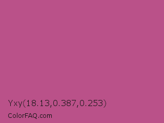 Yxy 18.13,0.387,0.253 Color is a normal rose color and the nearest color is Mulberry #c54b8c. Hex code #ba5189 and RGB value is rgb(186,81,137). In RGB color space, this color is composed of 73% red, 32% green, 54% blue, In CMYK color space, this color is composed of 0% cyan, 56% magenta, 26% yellow , 27% black , In HSL color space, this color has a hue angle of 328° , 43% saturation and 52% lightness.