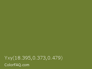 Yxy 18.395,0.373,0.479 Color is a normal lime color and the nearest color is Crete #737829. Hex code #6d7e31 and RGB value is rgb(109,126,49). In RGB color space, this color is composed of 43% red, 49% green, 19% blue, In CMYK color space, this color is composed of 13% cyan, 0% magenta, 61% yellow , 51% black , In HSL color space, this color has a hue angle of 73° , 44% saturation and 34% lightness.