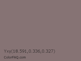 Yxy 18.591,0.336,0.327 Color is a normal red color and the nearest color is Empress #817377. Hex code #867374 and RGB value is rgb(134,115,116). In RGB color space, this color is composed of 53% red, 45% green, 45% blue, In CMYK color space, this color is composed of 0% cyan, 14% magenta, 13% yellow , 47% black , In HSL color space, this color has a hue angle of 357° , 8% saturation and 49% lightness.