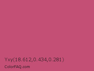 Yxy 18.612,0.434,0.281 Color is a normal rose color and the nearest color is Fuchsia Rose #c74375. Hex code #c44f75 and RGB value is rgb(196,79,117). In RGB color space, this color is composed of 77% red, 31% green, 46% blue, In CMYK color space, this color is composed of 0% cyan, 60% magenta, 40% yellow , 23% black , In HSL color space, this color has a hue angle of 341° , 50% saturation and 54% lightness.