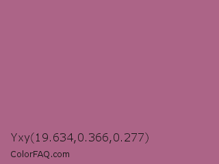 Yxy 19.634,0.366,0.277 Color is a normal rose color and the nearest color is Tapestry #b05e81. Hex code #ac6487 and RGB value is rgb(172,100,135). In RGB color space, this color is composed of 67% red, 39% green, 53% blue, In CMYK color space, this color is composed of 0% cyan, 42% magenta, 22% yellow , 33% black , In HSL color space, this color has a hue angle of 331° , 30% saturation and 53% lightness.