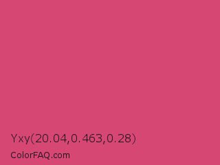 Yxy 20.04,0.463,0.28 Color is a normal rose color and the nearest color is Cabaret #d94972. Hex code #d64773 and RGB value is rgb(214,71,115). In RGB color space, this color is composed of 84% red, 28% green, 45% blue, In CMYK color space, this color is composed of 0% cyan, 67% magenta, 46% yellow , 16% black , In HSL color space, this color has a hue angle of 342° , 64% saturation and 56% lightness.