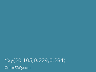 Yxy 20.105,0.229,0.284 Color is a normal blue color and the nearest color is Astral #327da0. Hex code #3b859c and RGB value is rgb(59,133,156). In RGB color space, this color is composed of 23% red, 52% green, 61% blue, In CMYK color space, this color is composed of 62% cyan, 15% magenta, 0% yellow , 39% black , In HSL color space, this color has a hue angle of 194° , 45% saturation and 42% lightness.