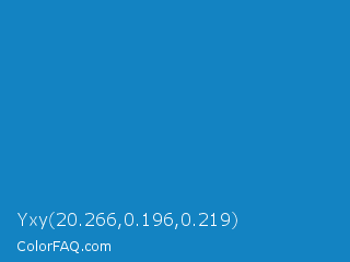 Yxy 20.266,0.196,0.219 Color is a normal blue color and the nearest color is Cyan Cornflower Blue #188bc2. Hex code #1383c2 and RGB value is rgb(19,131,194). In RGB color space, this color is composed of 7% red, 51% green, 76% blue, In CMYK color space, this color is composed of 90% cyan, 32% magenta, 0% yellow , 24% black , In HSL color space, this color has a hue angle of 202° , 82% saturation and 42% lightness.