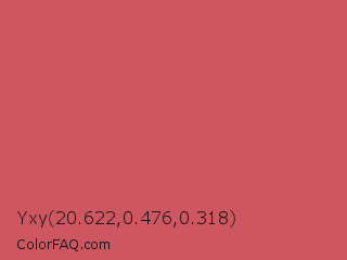 Yxy 20.622,0.476,0.318 Color is a normal red color and the nearest color is Chestnut Rose #cd5c5c. Hex code #ce5660 and RGB value is rgb(206,86,96). In RGB color space, this color is composed of 81% red, 34% green, 38% blue, In CMYK color space, this color is composed of 0% cyan, 58% magenta, 53% yellow , 19% black , In HSL color space, this color has a hue angle of 355° , 55% saturation and 57% lightness.