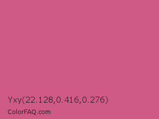Yxy 22.128,0.416,0.276 Color is a normal rose color and the nearest color is Cinnamon Satin #cd607e. Hex code #ce5a85 and RGB value is rgb(206,90,133). In RGB color space, this color is composed of 81% red, 35% green, 52% blue, In CMYK color space, this color is composed of 0% cyan, 56% magenta, 35% yellow , 19% black , In HSL color space, this color has a hue angle of 338° , 54% saturation and 58% lightness.