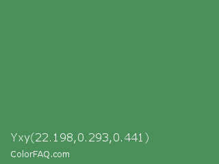 Yxy 22.198,0.293,0.441 Color is a normal green color and the nearest color is Middle Green #4d8c57. Hex code #4b905b and RGB value is rgb(75,144,91). In RGB color space, this color is composed of 29% red, 56% green, 36% blue, In CMYK color space, this color is composed of 48% cyan, 0% magenta, 37% yellow , 44% black , In HSL color space, this color has a hue angle of 134° , 32% saturation and 43% lightness.