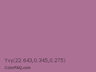 Yxy 22.643,0.345,0.275 Color is a normal magenta color and the nearest color is Pearly Purple #b768a2. Hex code #ad7095 and RGB value is rgb(173,112,149). In RGB color space, this color is composed of 68% red, 44% green, 58% blue, In CMYK color space, this color is composed of 0% cyan, 35% magenta, 14% yellow , 32% black , In HSL color space, this color has a hue angle of 324° , 27% saturation and 56% lightness.