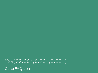Yxy 22.664,0.261,0.381 Color is a normal green color and the nearest color is Illuminating Emerald #319177. Hex code #3e9178 and RGB value is rgb(62,145,120). In RGB color space, this color is composed of 24% red, 57% green, 47% blue, In CMYK color space, this color is composed of 57% cyan, 0% magenta, 17% yellow , 43% black , In HSL color space, this color has a hue angle of 162° , 40% saturation and 41% lightness.