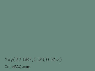 Yxy 22.687,0.29,0.352 Color is a normal green color and the nearest color is Viridian Green #678975. Hex code #698a7e and RGB value is rgb(105,138,126). In RGB color space, this color is composed of 41% red, 54% green, 49% blue, In CMYK color space, this color is composed of 24% cyan, 0% magenta, 9% yellow , 46% black , In HSL color space, this color has a hue angle of 158° , 14% saturation and 48% lightness.