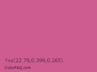 Yxy 22.79,0.399,0.265 Color is a normal rose color and the nearest color is Cinnamon Satin #cd607e. Hex code #ce5c90 and RGB value is rgb(206,92,144). In RGB color space, this color is composed of 81% red, 36% green, 56% blue, In CMYK color space, this color is composed of 0% cyan, 55% magenta, 30% yellow , 19% black , In HSL color space, this color has a hue angle of 333° , 54% saturation and 58% lightness.