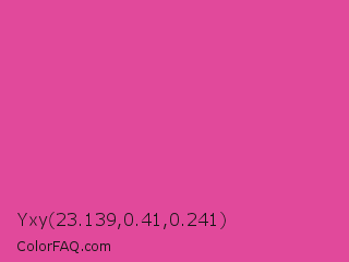 Yxy 23.139,0.41,0.241 Color is a normal rose color and the nearest color is Raspberry Pink #e25098. Hex code #e1499b and RGB value is rgb(225,73,155). In RGB color space, this color is composed of 88% red, 29% green, 61% blue, In CMYK color space, this color is composed of 0% cyan, 68% magenta, 31% yellow , 12% black , In HSL color space, this color has a hue angle of 328° , 72% saturation and 58% lightness.