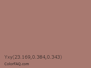 Yxy 23.169,0.384,0.343 Color is a normal red color and the nearest color is Burnished Brown #a17a74. Hex code #a87970 and RGB value is rgb(168,121,112). In RGB color space, this color is composed of 66% red, 47% green, 44% blue, In CMYK color space, this color is composed of 0% cyan, 28% magenta, 33% yellow , 34% black , In HSL color space, this color has a hue angle of 10° , 24% saturation and 55% lightness.