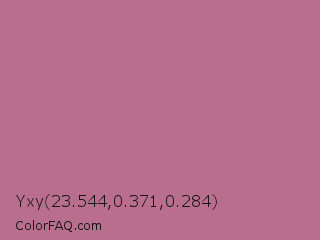 Yxy 23.544,0.371,0.284 Color is a normal rose color and the nearest color is Turkish Rose #b57281. Hex code #ba6e8e and RGB value is rgb(186,110,142). In RGB color space, this color is composed of 73% red, 43% green, 56% blue, In CMYK color space, this color is composed of 0% cyan, 41% magenta, 24% yellow , 27% black , In HSL color space, this color has a hue angle of 335° , 36% saturation and 58% lightness.
