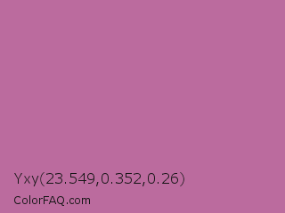 Yxy 23.549,0.352,0.26 Color is a normal magenta color and the nearest color is Pearly Purple #b768a2. Hex code #bb6b9e and RGB value is rgb(187,107,158). In RGB color space, this color is composed of 73% red, 42% green, 62% blue, In CMYK color space, this color is composed of 0% cyan, 43% magenta, 16% yellow , 27% black , In HSL color space, this color has a hue angle of 322° , 37% saturation and 58% lightness.