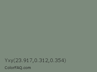 Yxy 23.917,0.312,0.354 Color is a normal green color and the nearest color is Blue Smoke #748881. Hex code #7c8a7c and RGB value is rgb(124,138,124). In RGB color space, this color is composed of 49% red, 54% green, 49% blue, In CMYK color space, this color is composed of 10% cyan, 0% magenta, 10% yellow , 46% black , In HSL color space, this color has a hue angle of 120° , 6% saturation and 51% lightness.