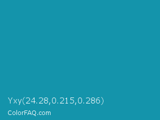 Yxy 24.28,0.215,0.286 Color is a normal cyan color and the nearest color is Eastern Blue #1e9ab0. Hex code #1494ab and RGB value is rgb(20,148,171). In RGB color space, this color is composed of 8% red, 58% green, 67% blue, In CMYK color space, this color is composed of 88% cyan, 13% magenta, 0% yellow , 33% black , In HSL color space, this color has a hue angle of 189° , 79% saturation and 37% lightness.