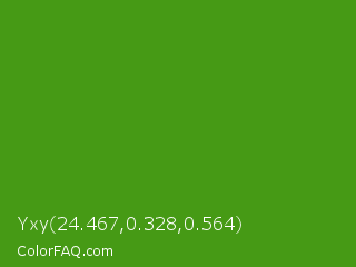 Yxy 24.467,0.328,0.564 Color is a normal green color and the nearest color is Vida Loca #549019. Hex code #469a15 and RGB value is rgb(70,154,21). In RGB color space, this color is composed of 27% red, 60% green, 8% blue, In CMYK color space, this color is composed of 55% cyan, 0% magenta, 86% yellow , 40% black , In HSL color space, this color has a hue angle of 98° , 76% saturation and 34% lightness.