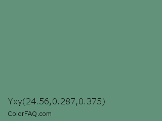 Yxy 24.56,0.287,0.375 Color is a normal green color and the nearest color is Viridian Green #678975. Hex code #62927a and RGB value is rgb(98,146,122). In RGB color space, this color is composed of 38% red, 57% green, 48% blue, In CMYK color space, this color is composed of 33% cyan, 0% magenta, 16% yellow , 43% black , In HSL color space, this color has a hue angle of 150° , 20% saturation and 48% lightness.