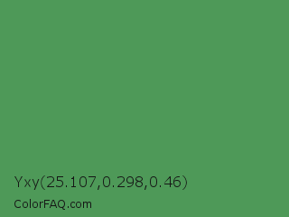 Yxy 25.107,0.298,0.46 Color is a normal green color and the nearest color is Fruit Salad #4f9d5d. Hex code #4e9958 and RGB value is rgb(78,153,88). In RGB color space, this color is composed of 31% red, 60% green, 35% blue, In CMYK color space, this color is composed of 49% cyan, 0% magenta, 42% yellow , 40% black , In HSL color space, this color has a hue angle of 128° , 32% saturation and 45% lightness.