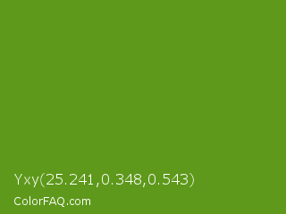 Yxy 25.241,0.348,0.543 Color is a normal green color and the nearest color is Vida Loca #549019. Hex code #5e991b and RGB value is rgb(94,153,27). In RGB color space, this color is composed of 37% red, 60% green, 11% blue, In CMYK color space, this color is composed of 39% cyan, 0% magenta, 82% yellow , 40% black , In HSL color space, this color has a hue angle of 88° , 70% saturation and 35% lightness.