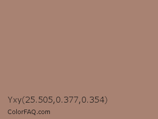 Yxy 25.505,0.377,0.354 Color is a normal orange color and the nearest color is Beaver #9f8170. Hex code #a88272 and RGB value is rgb(168,130,114). In RGB color space, this color is composed of 66% red, 51% green, 45% blue, In CMYK color space, this color is composed of 0% cyan, 23% magenta, 32% yellow , 34% black , In HSL color space, this color has a hue angle of 18° , 24% saturation and 55% lightness.
