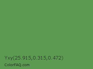 Yxy 25.915,0.315,0.472 Color is a normal green color and the nearest color is Fruit Salad #4f9d5d. Hex code #5b9a50 and RGB value is rgb(91,154,80). In RGB color space, this color is composed of 36% red, 60% green, 31% blue, In CMYK color space, this color is composed of 41% cyan, 0% magenta, 48% yellow , 40% black , In HSL color space, this color has a hue angle of 111° , 32% saturation and 46% lightness.