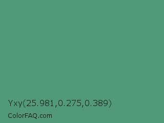 Yxy 25.981,0.275,0.389 Color is a normal green color and the nearest color is Wintergreen Dream #56887d. Hex code #52997a and RGB value is rgb(82,153,122). In RGB color space, this color is composed of 32% red, 60% green, 48% blue, In CMYK color space, this color is composed of 46% cyan, 0% magenta, 20% yellow , 40% black , In HSL color space, this color has a hue angle of 154° , 30% saturation and 46% lightness.