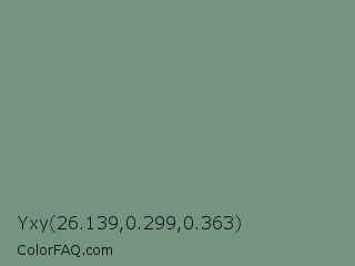 Yxy 26.139,0.299,0.363 Color is a normal green color and the nearest color is Laurel #749378. Hex code #749380 and RGB value is rgb(116,147,128). In RGB color space, this color is composed of 45% red, 58% green, 50% blue, In CMYK color space, this color is composed of 21% cyan, 0% magenta, 13% yellow , 42% black , In HSL color space, this color has a hue angle of 143° , 13% saturation and 52% lightness.