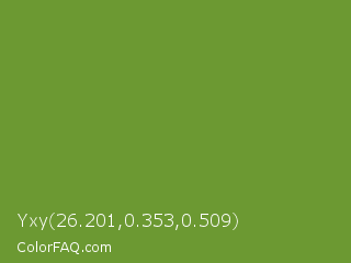 Yxy 26.201,0.353,0.509 Color is a normal green color and the nearest color is Palm Leaf #6f9940. Hex code #6c9932 and RGB value is rgb(108,153,50). In RGB color space, this color is composed of 42% red, 60% green, 20% blue, In CMYK color space, this color is composed of 29% cyan, 0% magenta, 67% yellow , 40% black , In HSL color space, this color has a hue angle of 86° , 51% saturation and 40% lightness.