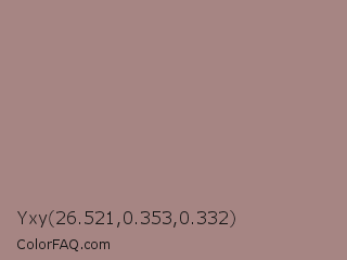 Yxy 26.521,0.353,0.332 Color is a normal red color and the nearest color is Pharlap #a3807b. Hex code #a68583 and RGB value is rgb(166,133,131). In RGB color space, this color is composed of 65% red, 52% green, 51% blue, In CMYK color space, this color is composed of 0% cyan, 20% magenta, 21% yellow , 35% black , In HSL color space, this color has a hue angle of 3° , 16% saturation and 58% lightness.