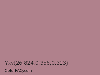 Yxy 26.824,0.356,0.313 Color is a normal red color and the nearest color is English Lavender #b48395. Hex code #b0818c and RGB value is rgb(176,129,140). In RGB color space, this color is composed of 69% red, 51% green, 55% blue, In CMYK color space, this color is composed of 0% cyan, 27% magenta, 20% yellow , 31% black , In HSL color space, this color has a hue angle of 346° , 23% saturation and 60% lightness.